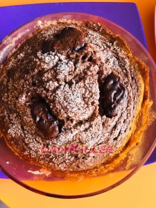 Una vez finalizado este tiempo, sácalo con cuidado del micro, coloca el BOLCAKE en un plato y, si quieres, ya puedes cortarlo, pero antes de consumirlo espera a que se enfríe, sobre todo el centro y los trozos grandes de chocolate!!